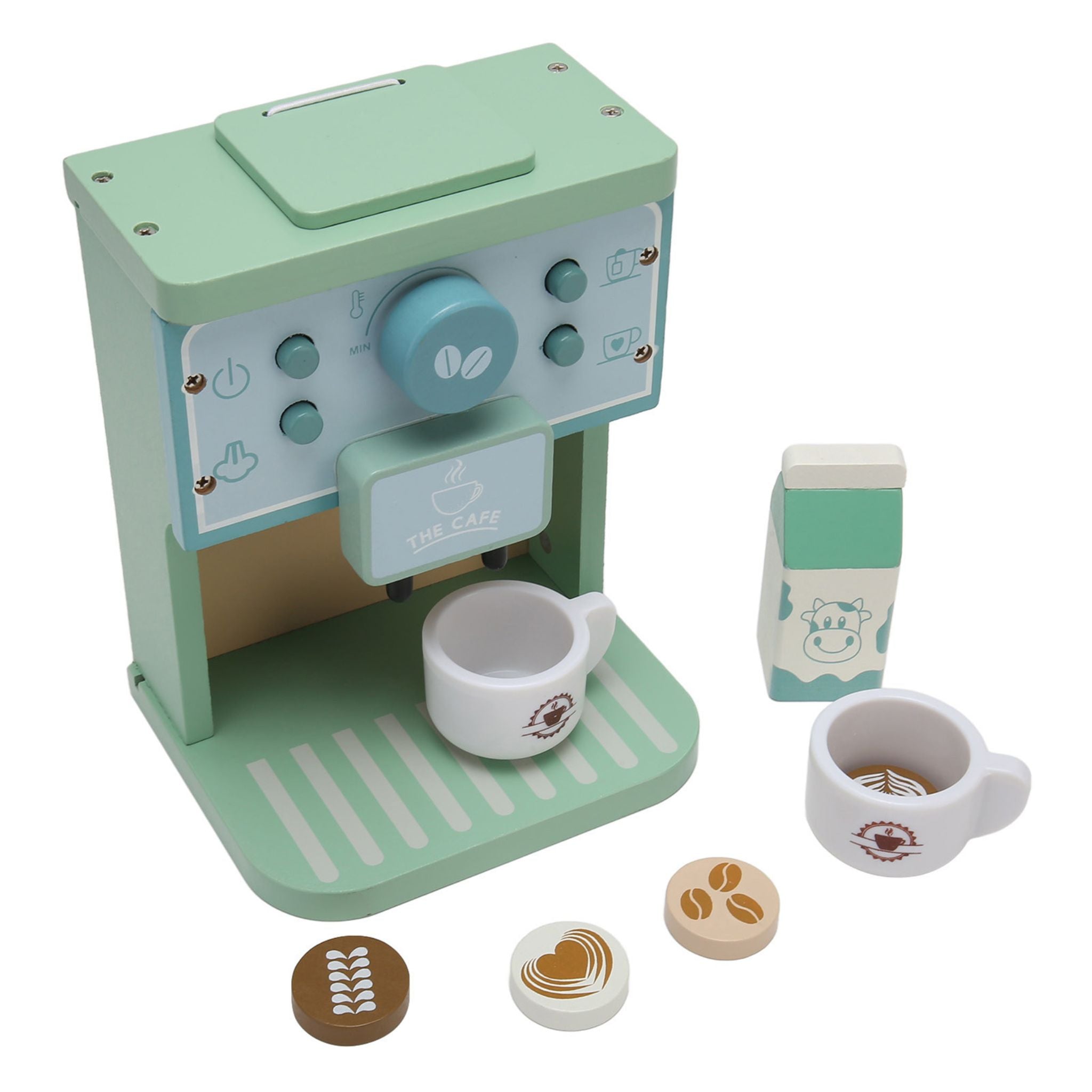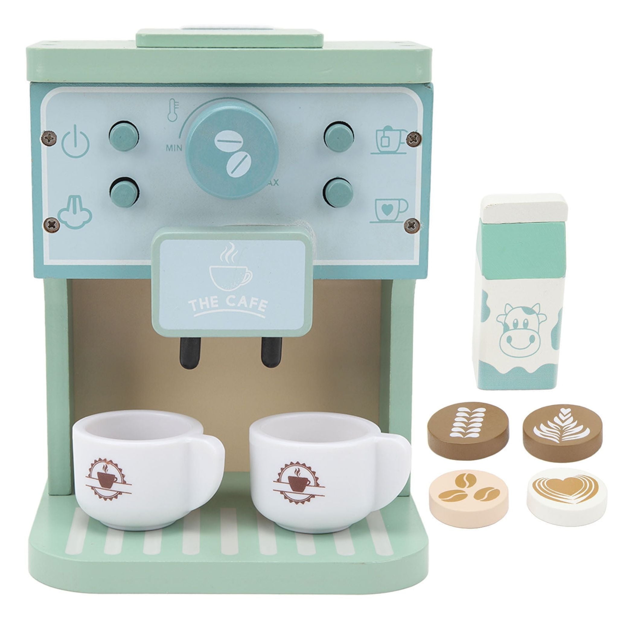 - Realistic Design: The Montessori Coffee Maker features buttons, dials, and a milk frother that mimic a real coffee machine, giving kids an authentic barista experience.