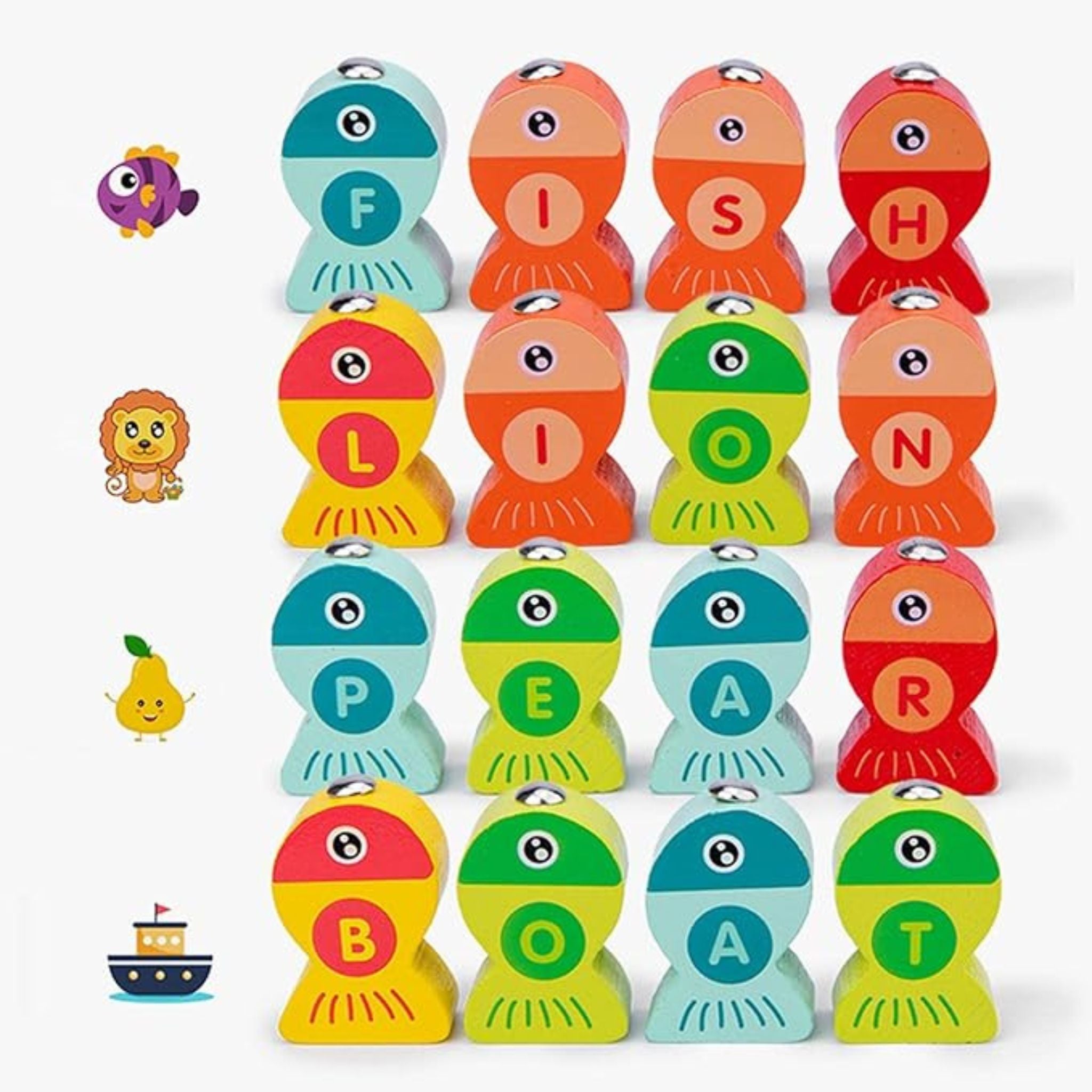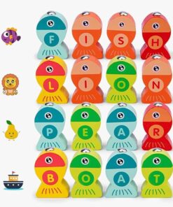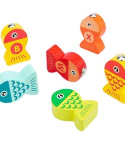- Vibrant & Interactive Design: Each wooden fish is painted in bright colors and labeled with a letter, capturing attention and making learning the alphabet an enjoyable experience.