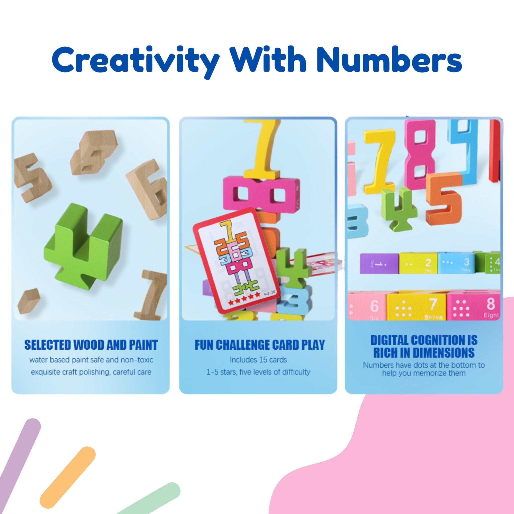 - Made from eco-friendly, non-toxic wood with smooth edges