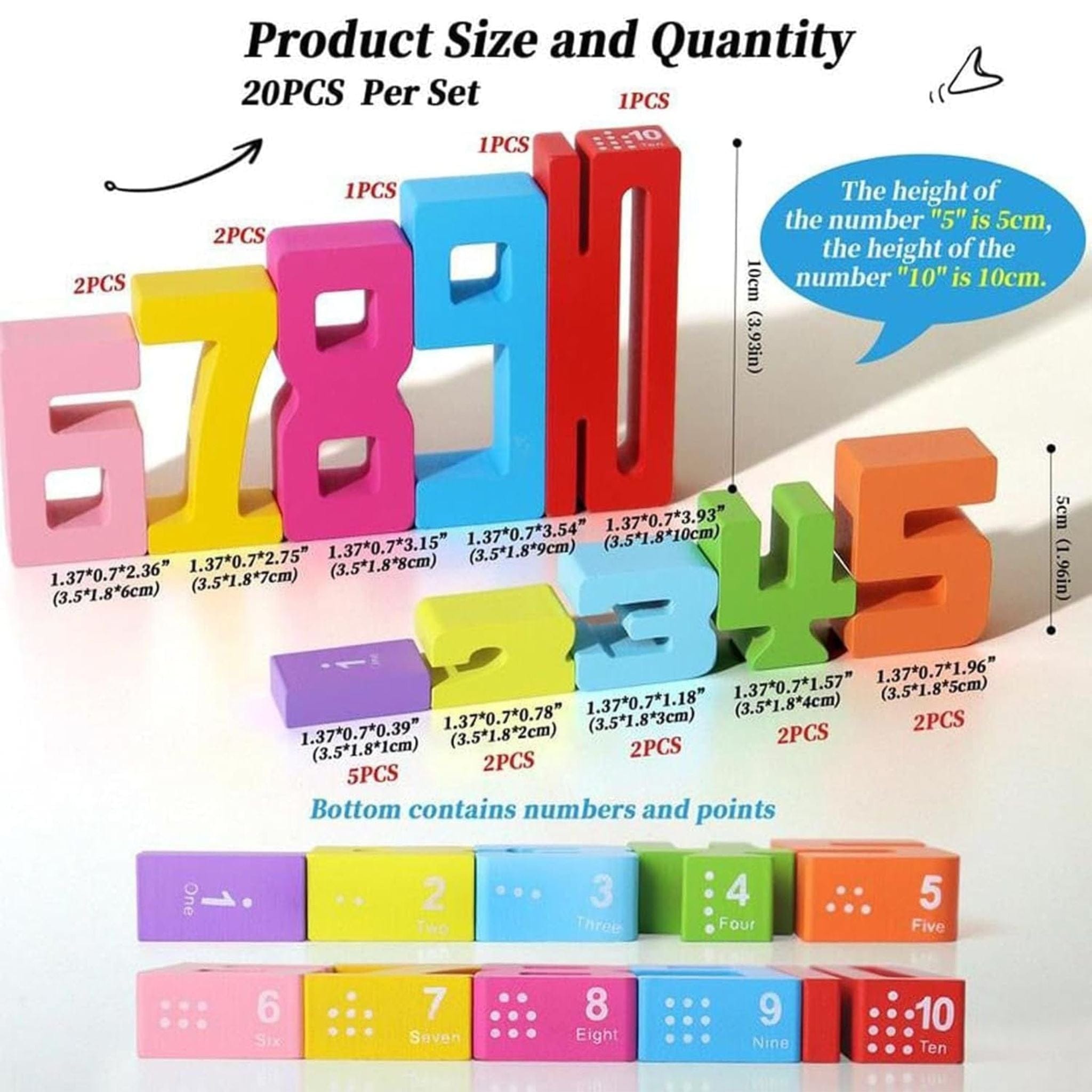 Following the Montessori method, these number blocks promote independent learning and problem-solving. Children naturally absorb math concepts as they play — learning to recognize numbers, understand order, and even start simple addition or subtraction.